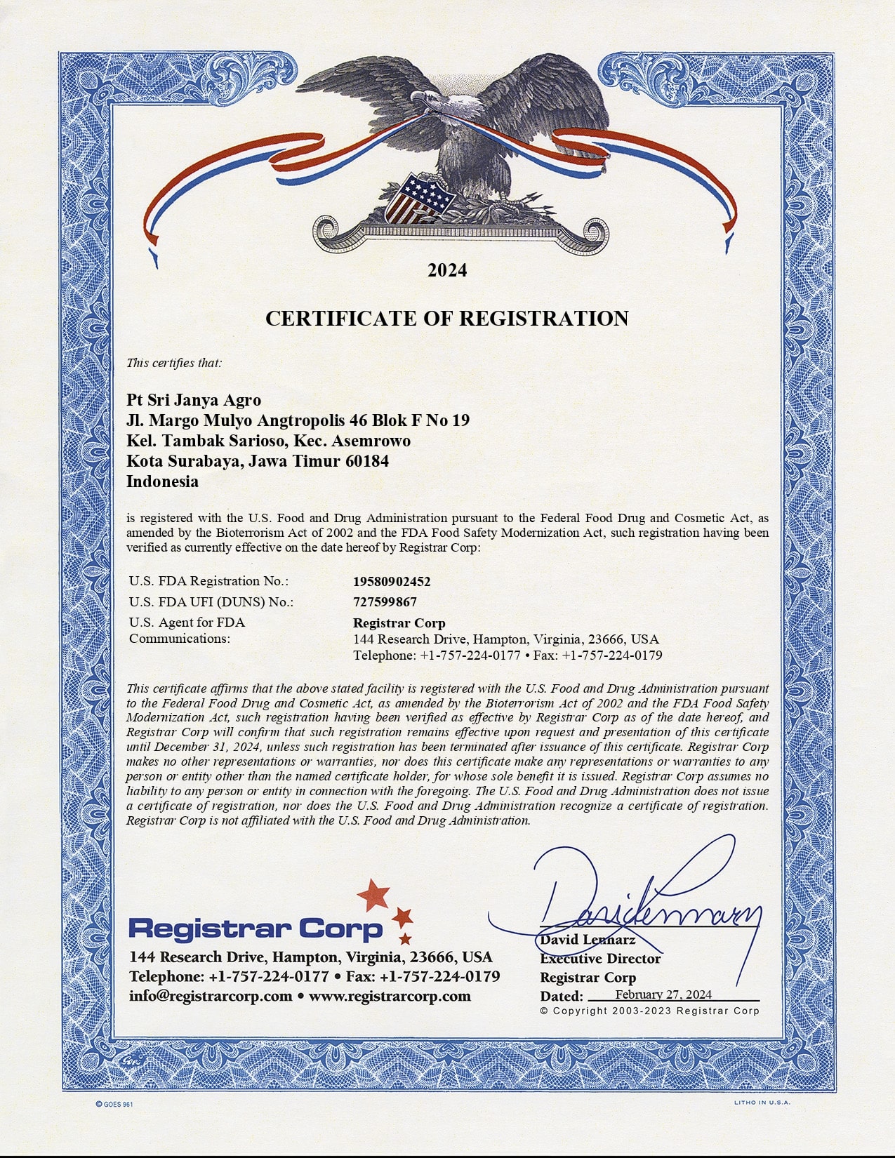 “Sri Janya Agro proudly holds an ISO 22000-2018 certification for food safety management systems, ensuring our commitment to delivering safe and high-quality food products.”